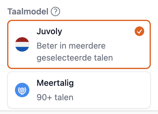 Dit is het taalmodel dat door Juvoly zelf is ontwikkeld. Het is speciaal getraind op medische termen en herkent bijvoorbeeld medicijnnamen beter dan andere modellen. Ook is het getraind in het Engels en Fries.