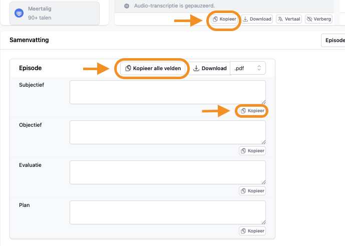 Valt de internetverbinding weg? Kopieer dan het transcript van het consult.
